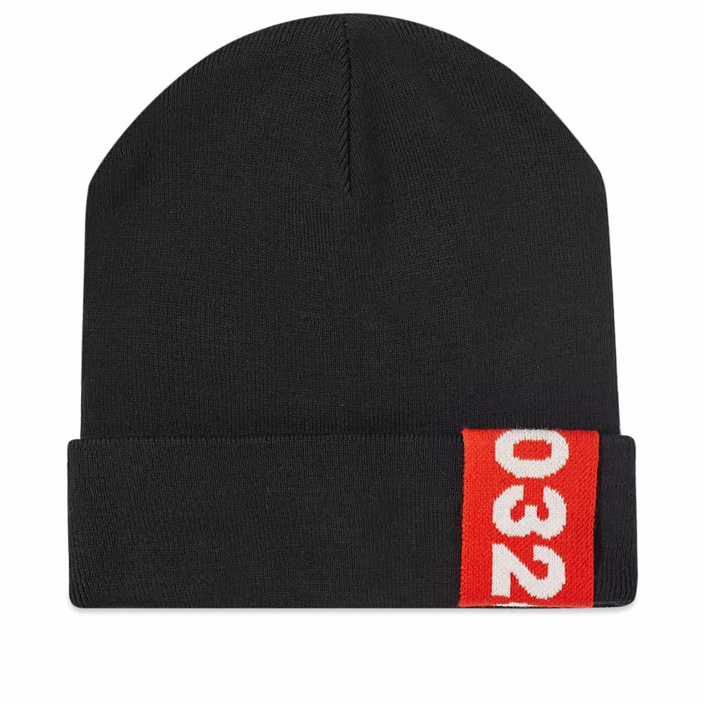 032c. Social media and fashion company, this brand creates ready to wear apparel for those who appreciate the art. This beanie features the brand’s iconic taping on the brim, this features heavily throughout collections and collaborations and even homeware. The bold red taping contrasts against the black background and makes the brand visible no matter what.