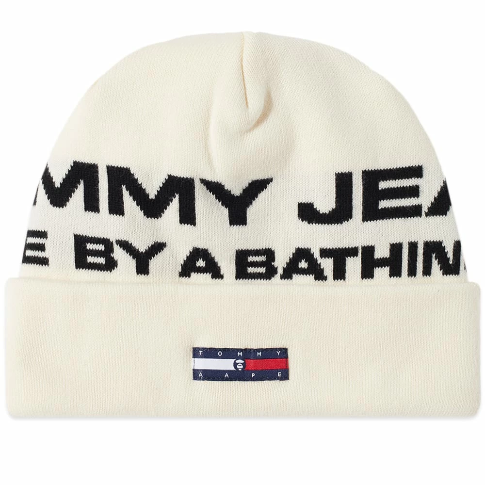 From A Bathing Ape and Tommy Hilfiger’s youthful sub-brands AAPE and Tommy Jeans comes a streetwear collection, heavily driven by skatewear. This ivory beanie is part of the line-up. It’s sustainably made in Italy from organic cotton and defined by its clash of co-branding on the brim and body. Perfect for chilly days spent on the deck.