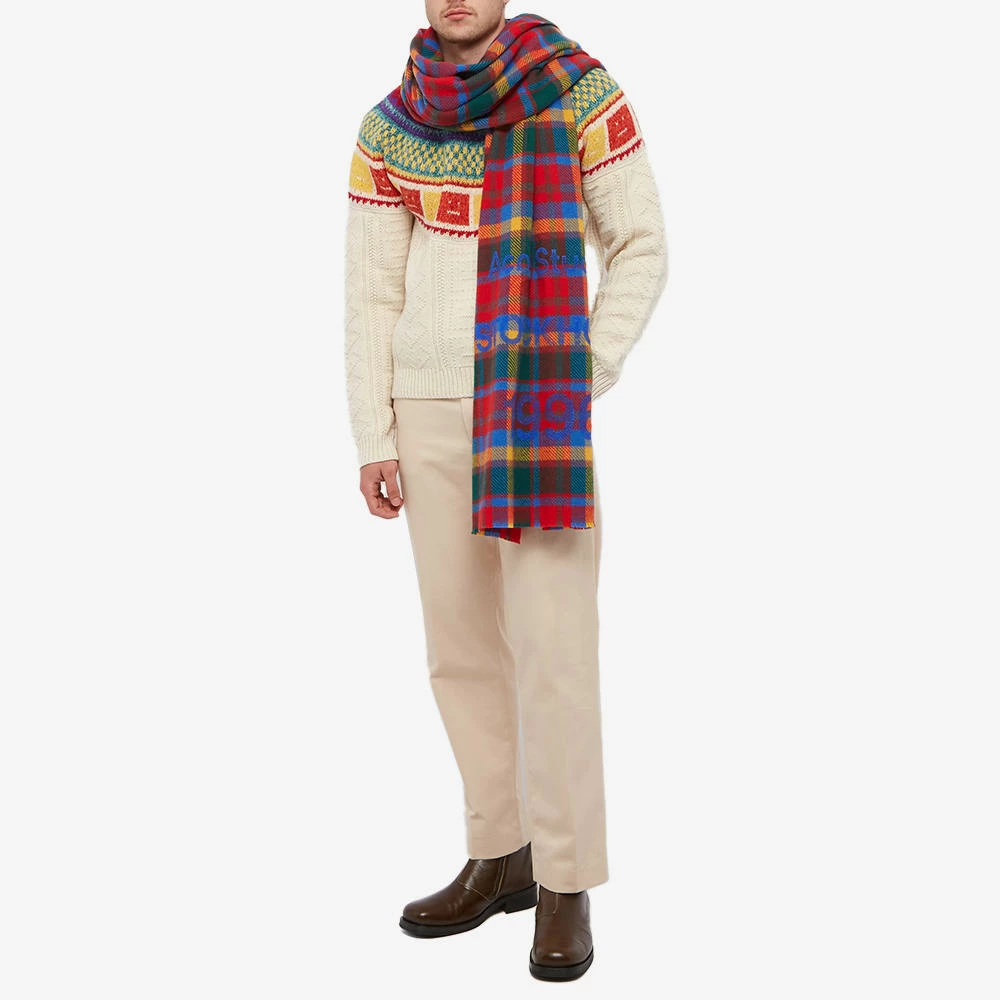 Wrap up in style during the colder months with this red and green check scarf from Acne Studios. Crafted from pure wool – for a warm, yet breathable, fit – it features the brand’s logo woven in blue across the bottom.