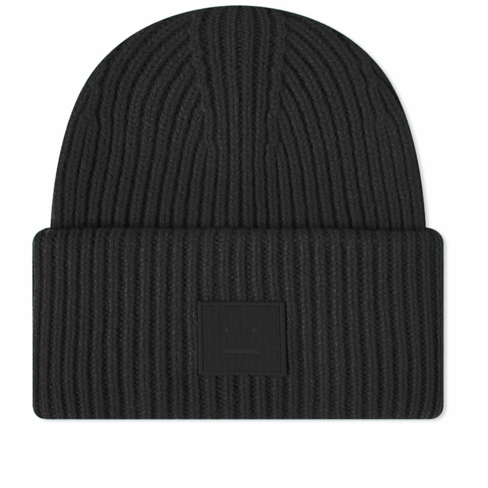An Acne Studios signature, this oversized black beanie is patched with the brand’s straight faced symbol. An off-duty essential, it’s knitted in a thick rib-stitch from pure wool, then styled with a large upturned brim.
