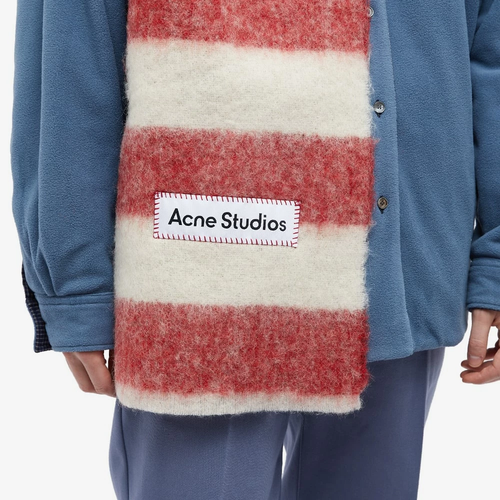 Acne Studios echoes its roots in creative collective ACNE – or “Ambition to Create Novel Expressions” – with this Vally Breton scarf. Part of the Stockholm-based brand’s ever popular line-up of accessories, this smooth scarf is characterised with a playfully vibrant stripe all-over, while an exaggerated Acne Studios logo ties everything together, making it an unmistakable addition to any outfit.