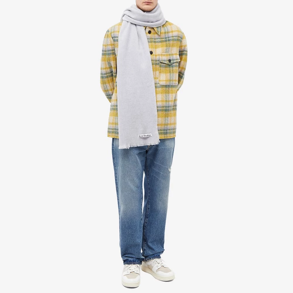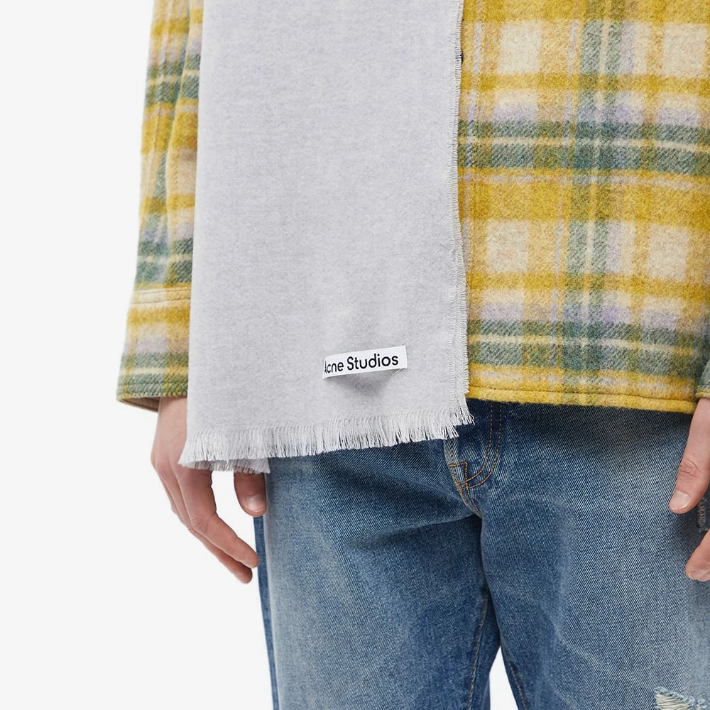 Stay cosy in style all season long in this grey scarf from Acne Studios. Crafted from super-soft wool in Italy, it features delicate fringed edges and a subtle woven brand tab.