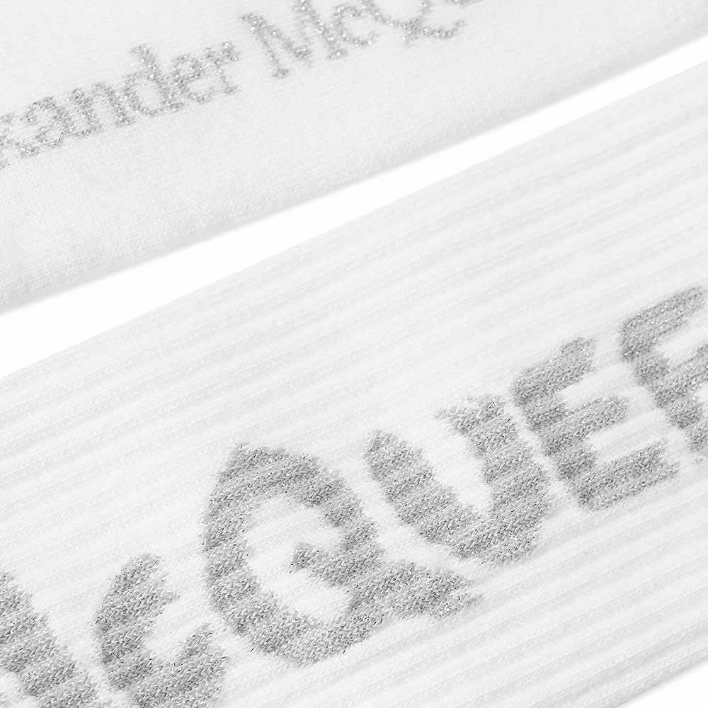 Bring an air of rebellious British swagger to your looks with these socks – courtesy of Alexander McQueen’s logo editions. Made in Italy and infused with a comfy amount of stretch, this white pair are signed off with silver metallic, graffiti-inspired branding at the ankle and sole.