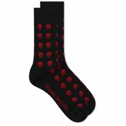 From cuff to toe, Alexander McQueen’s signature motif decorates this pair of socks. Exuding a Gothic vibe with vibrant red skulls against its black backdrop, add this Italian-made design to your look for a luxury finish.