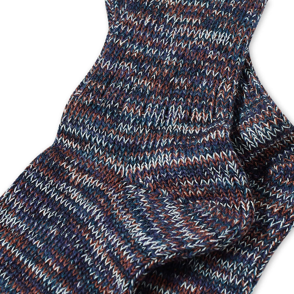 Anonymous Ism’s socks are great for the cooler months – they’re thick, soft, and most importantly – brighten up cold-weather looks. Made in Japan, this pair are woven with navy blue cotton threads.