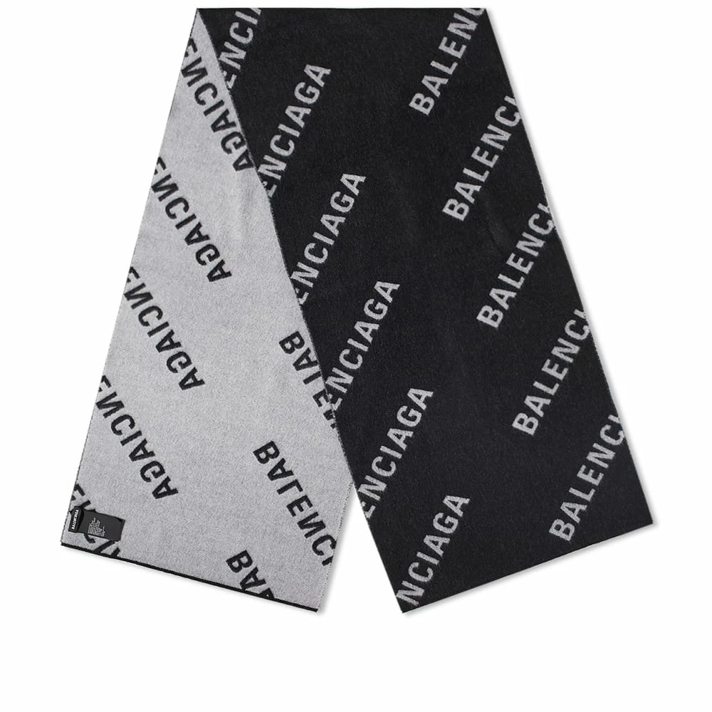 Cristóbal Balenciaga visionary genius lives on in the House that still bears his name, with Creative Director Demna Gvasalia filling each collection with the avant-garde shapes that set the brand apart. Crafted from brushed wool this scarf features an all over logo print in black and white.