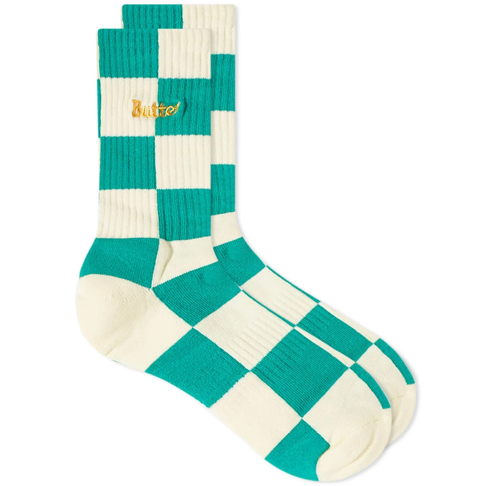 Elevate your essentials with a helping hand from Butter Goods and these playful teal check socks. They’re signed off with the signature golden Butter logo at the hem, for added skate-style to pop above your favourite sneakers.