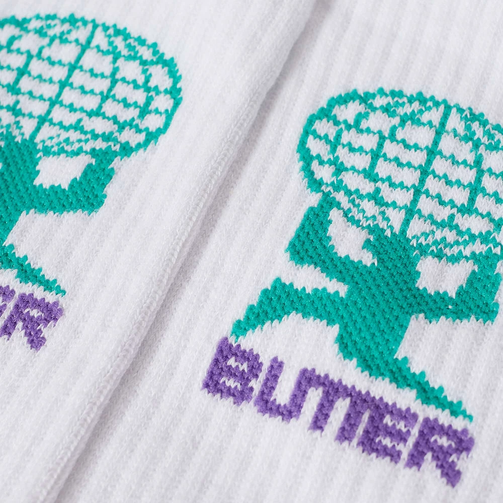 Butter Goods has your skate socks line-up covered with this Terrain pair. Made from pure cotton they feature ribbed trims and are detailed with a playful retro graphic at the ankle for a pop of colour above your favourite sneakers.