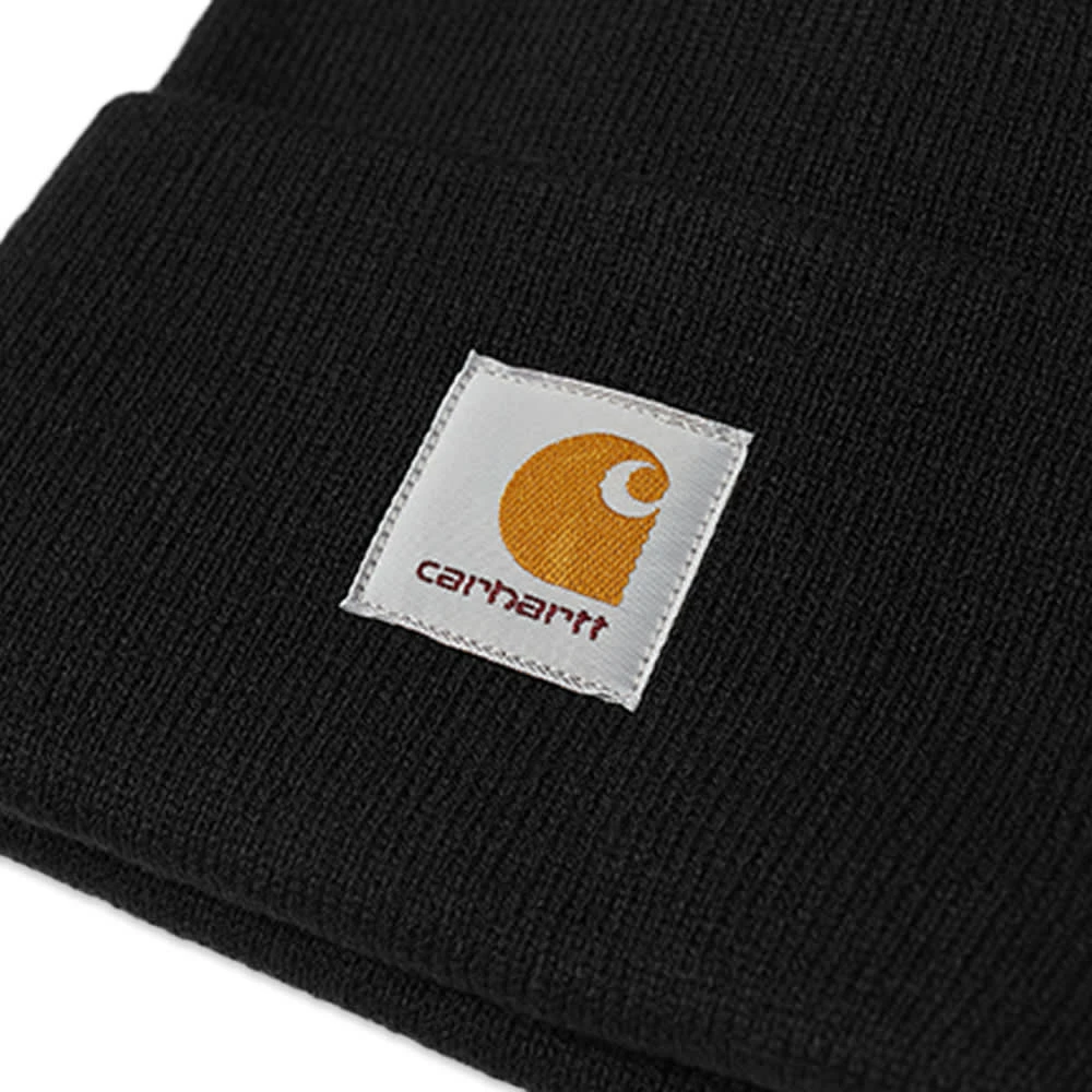Carhartt WIP’s journey from factory to fashion show began in the 1990’s, when the brand became increasingly popular among graffiti artists. One of the brand’s staple pieces, this black beanie is knitted with a stretchy rib stitch to ensure comfort. Finished with a central woven brand patch.