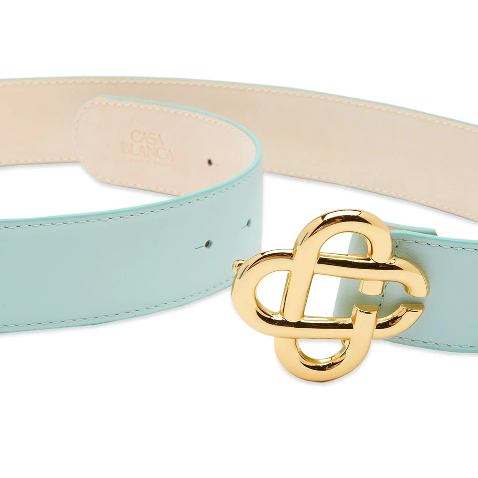 Accent any ‘fit with a touch of Casablanca’s Parisian style using this green belt. Replacing the traditional buckle with the brand’s signature CC emblem in gold-tone metal, it’s reflective of Casablanca’s elegant aesthetic, as luxurious as a “crisp glass of champagne at a private country club terrace sunset”