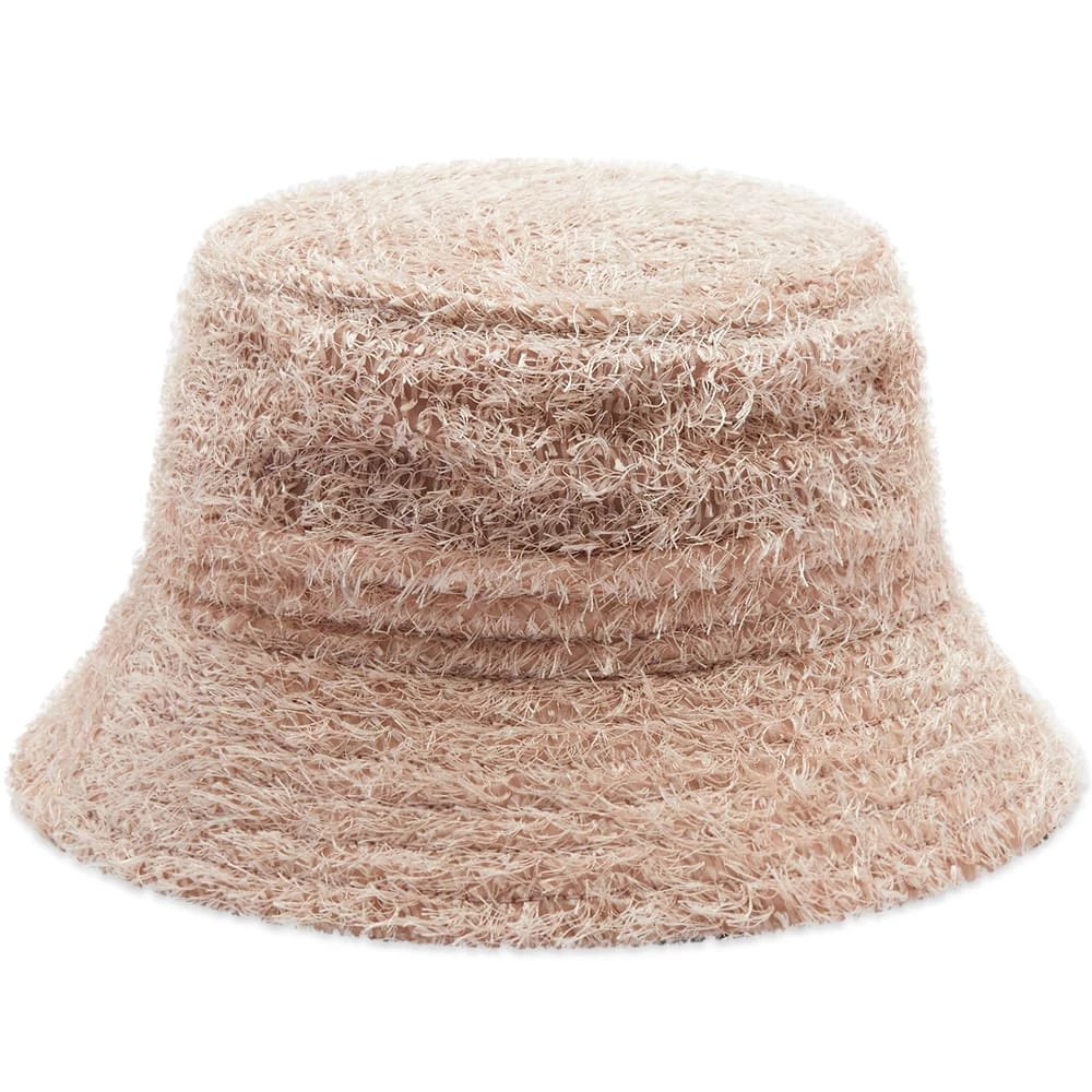 Top of London’s talent list, designer Craig Green is celebrated for innovative design which makes its mark globally with concepts of uniform and utility. This bucket hat allows you to switch up your look, one side is in a sporty nylon and the other a total contrast – in a fluffy textured fabric.