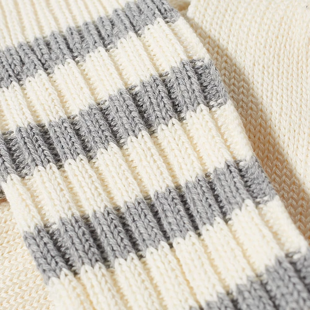 Built with quality and comfort in mind, Decka’s socks are unrivalled. This pair are crafted from a cosy cotton blend and dressed in an ivory and grey colourway, then signed off with four stripes around the ankle.
