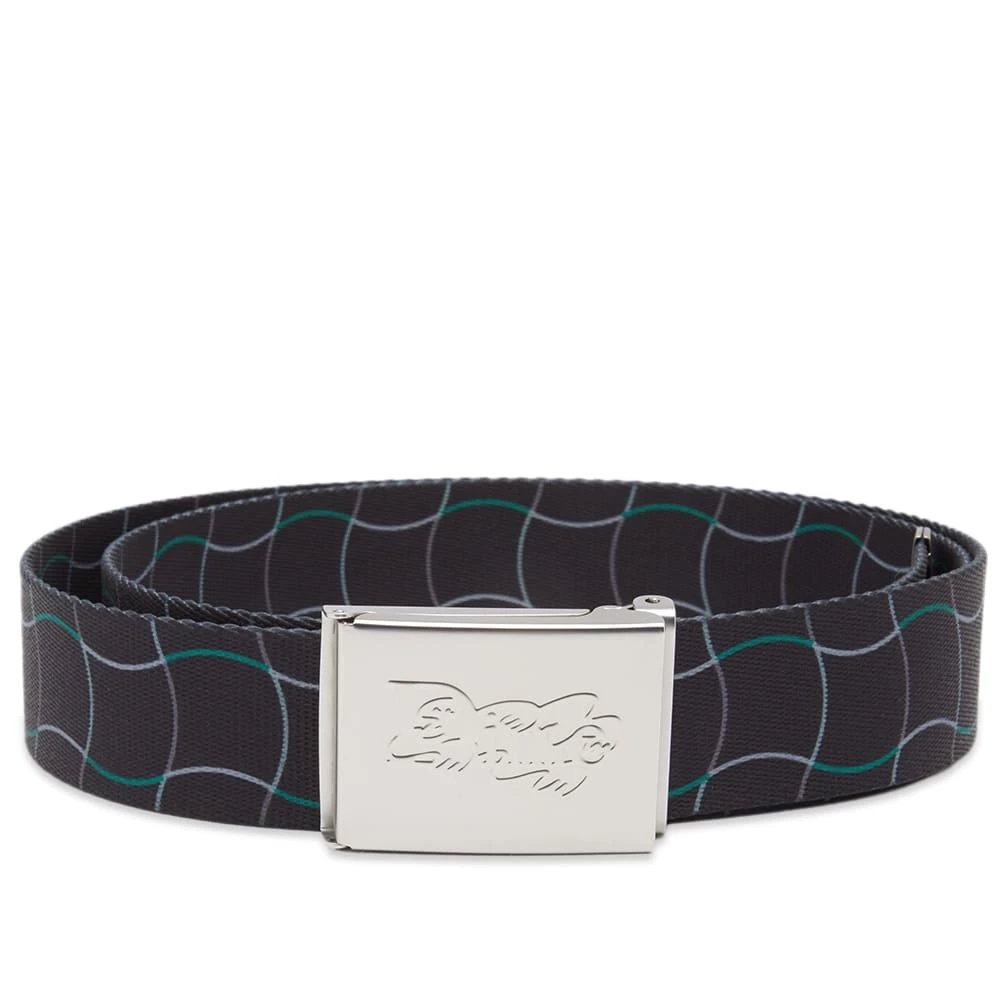 With its roots firmly in skateboarding, Montreal’s own Dime has made a name for itself in the global streetwear scene. Crafted with a chequered wave design, this belt features an embossed logo metal buckle.