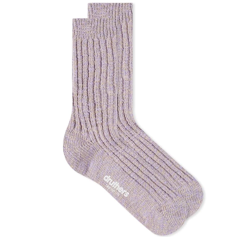 Expertly crafted in Japan, these Slub crew socks from Druthers are woven from midweight organic yarn – perfect for all-year round wear. Arriving in a light purple shade, they’re ribbed from top to bottom and finished with the brand’s signature logo printed on the arch of the foot.