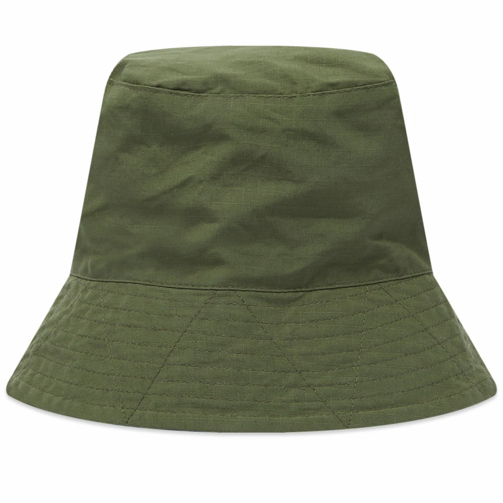 Engineered Garments fuses American sportswear, outdoor clothing and military uniforms to create this olive-coloured bucket hat. Crafted in the USA from durable cotton, it’s reinforced with zig-zagged top stitching for longevity.