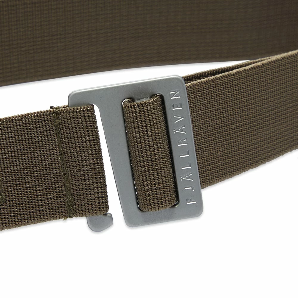 Light and comfortable, this olive-green Midsummer belt from Fjällräven is the perfect accessory for all-round active days. Crafted from a strong and stretchy fabric, it features a durable aluminum buckle – for a personalised fit – and is complete with engraved branding.