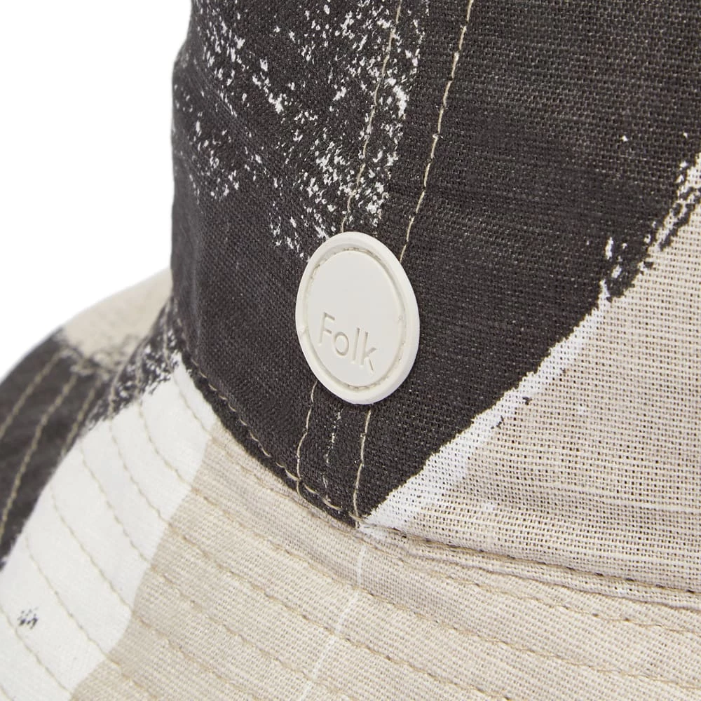 Perfect for the summer, Folk’s bucket hat is made in Portugal from cooling linen with a full brim to help protect you from the sun. It’s decorated with a unique graphic print and a branded rubber patch on the front.