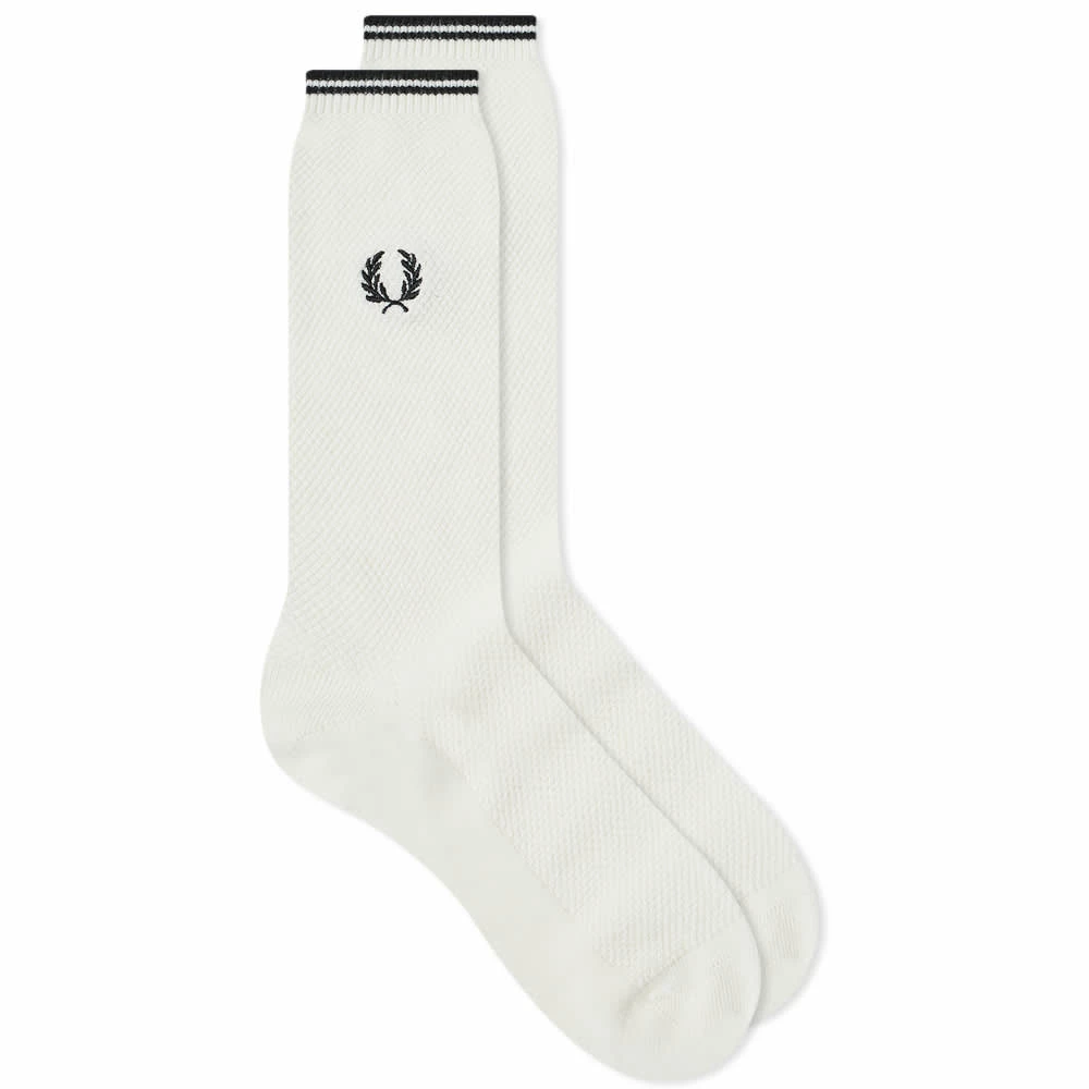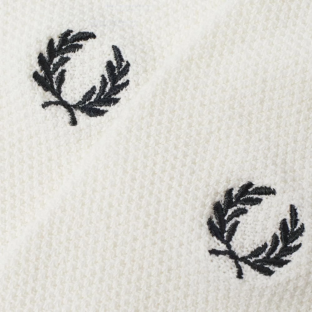These socks are inspired by Fred Perry’s iconic polos. In white, they’re piqué-woven from a comfy cotton blend and detailed with the tennis style’s two signature accents: twin-tipped trims and an embroidered laurel wreath.