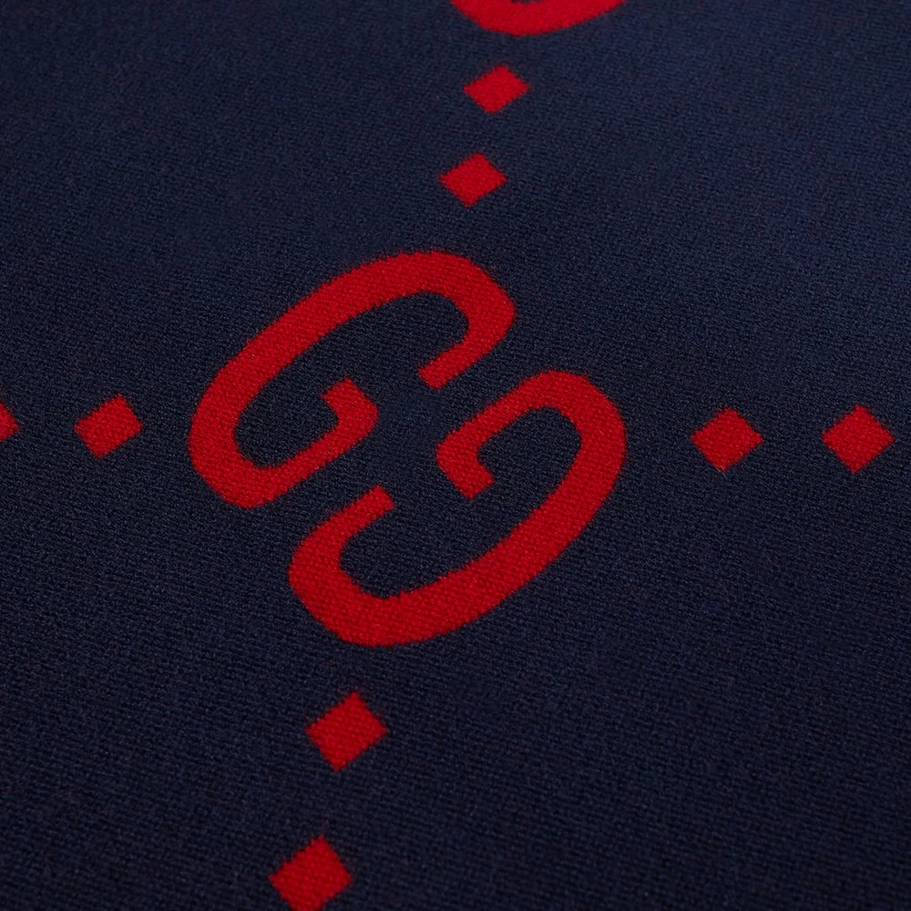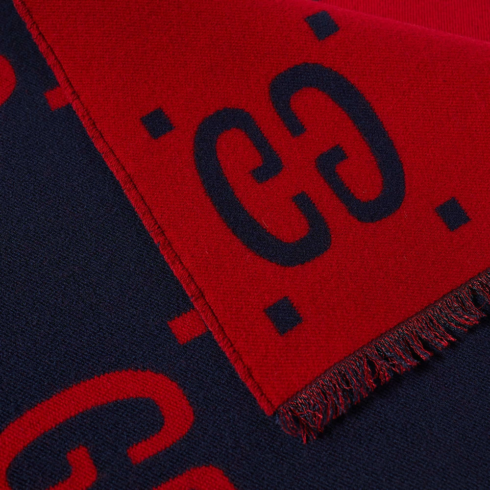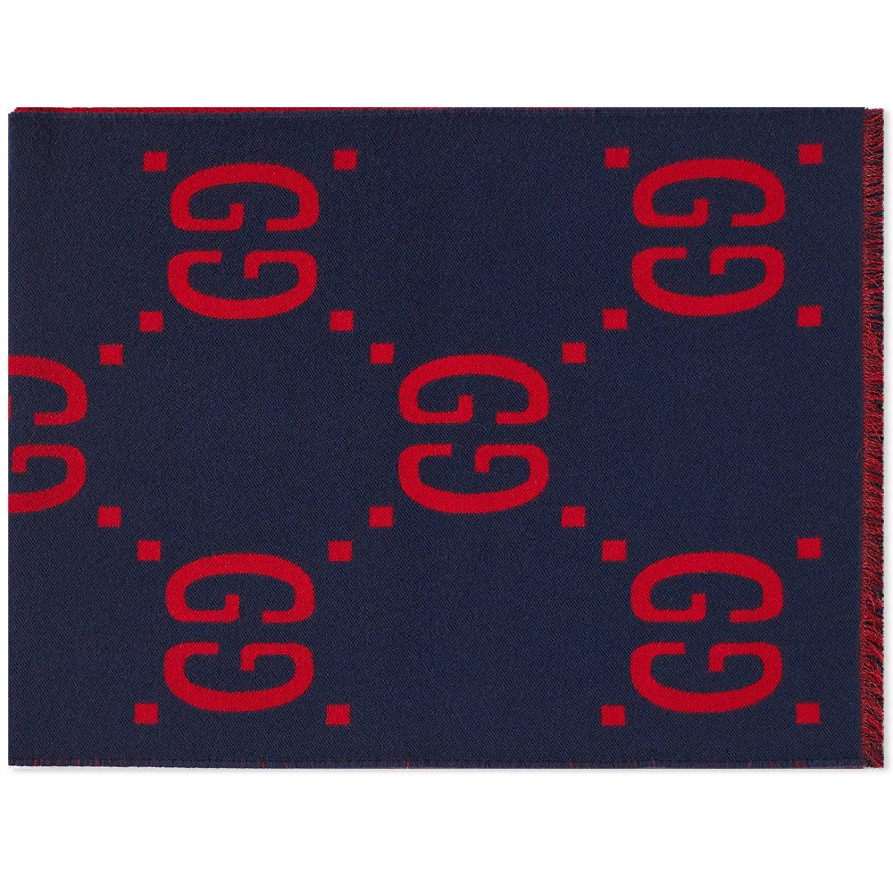 Gucci’s GG motif is as iconic today as it was back in the ‘70s when it debuted— that’s why accessories like this jacquard-woven scarf are still blanketed in it. Oversized and trimmed with fine fringing, it’s made in Italy from a sumptuously soft blend of wool and silk and bears the famous repeated pattern in midnight blue and crimson on both sides.