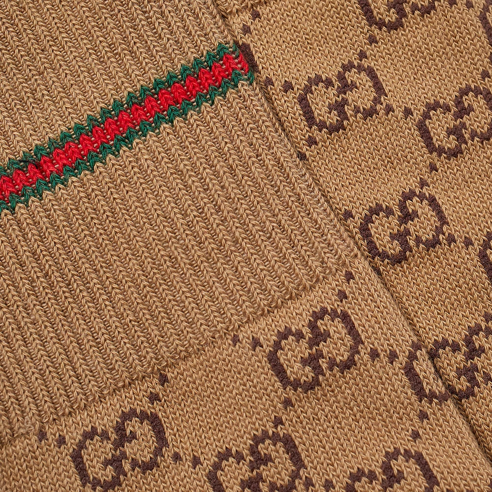 If anyone was going to make socks look high-fashion, it was going to be Gucci. This tan pair is crafted in Italy with a soft cotton blend knit that’s jacquard woven with the instantly recognisable GG pattern in contrasting brown. Another fashion house signature— a trio of ivy and crimson stripes— trims each sock around its ribbed ankle.