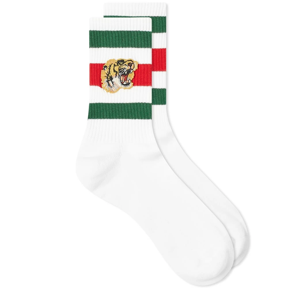 Sports socks aren’t just for exercise, as Gucci proves with this white pair. Just as suitable for teaming with your horsebit loafers as they are athletic sneakers, they’re made from a soft cotton mix and feature two brand signatures at the cuff — green and red stripes and a fierce tiger.