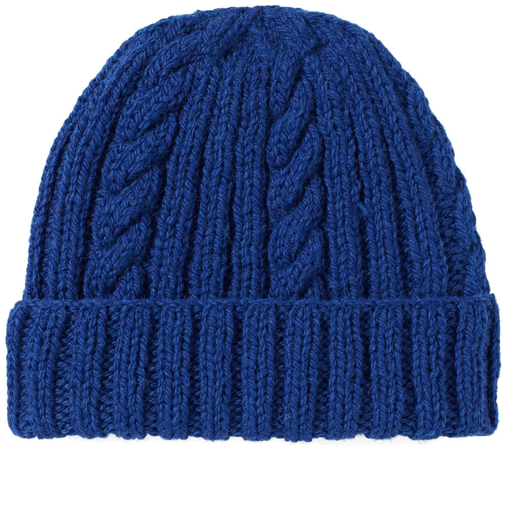 Simple and timeless, this knitted Aran hat is a warming accessory from traditional Scottish brand Inverallan. Brightening up any look with its electric blue hue, it’s made from lambswool and completed with a cosy turned-up brim.