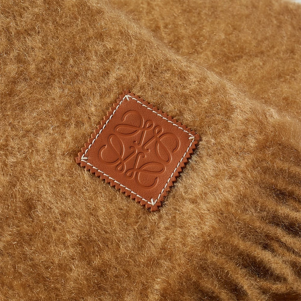 Elevate your winter essentials with a helping hand from Loewe and this timeless, camel-coloured mohair scarf. Crafted from a luxurious wool and mohair blend, it features soft fringed ends – one of which features an embossed leather brand patch.