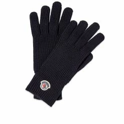 Originally crafting technical pieces for outdoor workers, skiers, and mountaineers, Moncler was first founded in 1952 in an Alpine village in France. Crafted with soft virgin wool, these navy gloves feature a signature brand patch.
