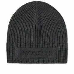 Crafted from luxurious virgin wool, this dark grey ribbed knit beanie from Moncler is the perfect cold weather accessory. It’s complete with tonal logo branding embroidered on the front for a premium finish.