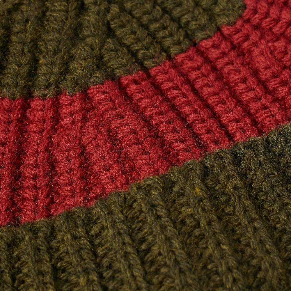 Nigel Cabourn continues to draw inspiration from mountaineer, George Lowe, for its cosy winter collections. A staple piece is the pom pom beanie. With its handmade pom-pom and stylish stripes, it mimics the watch cap he wore during the 1957-58 Trans-Antarctic Expedition and has a homey handmade look.
