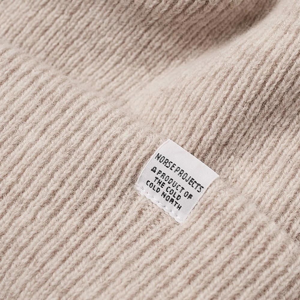 A neutral style, this Norse Projects beanie is dressed in a subtle ecru shade. Capturing the minimalist grace of Scandinavian design, this pure lambswool headwear accessory is knitted in Portugal using British yarn. Complete with a ribbed knit, turned up brim and a woven brand tab, add this natural and traditional style to your rotation for the perfect flourish to complete an outfit.