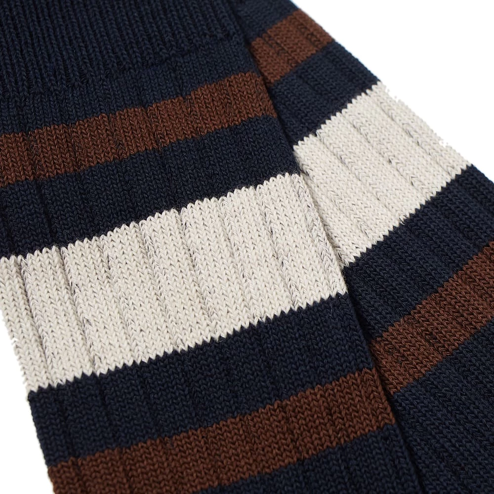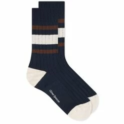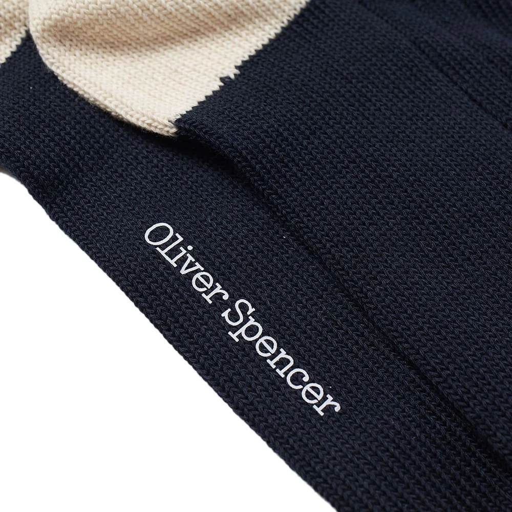 London brand Oliver Spencer is quietly confident, with easy-to-wear staples that are distinguished by unexpected details and carefully curated fabrics. A nod to classic varsity styles, these Polperro ribbed socks add a sporty element to any casual outfit, woven in a soft cotton with contrast striped ankles.