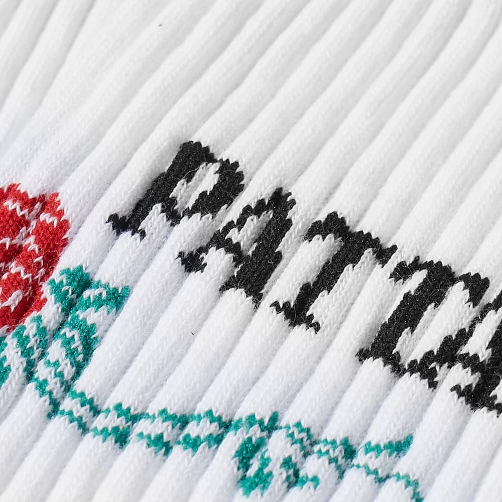 A flourishing new design for the SS season, Dutch streetwear label Patta welcomes these Rose sports socks into its latest collection. Adorned with rose artwork and the signature brand logo, meticulously placed to peek out above your sneaker, these socks are sure to let everyone know you’re part of the Patta community.