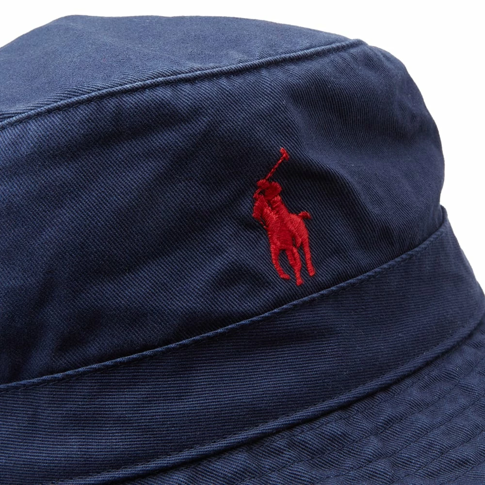 Come rain or shine, this Polo Ralph Lauren bucket hat makes it easy to bring a touch of all-American cool into any outfit. Made using inky blue cotton twill, it’s signed off with contrasting red pony embroidery.