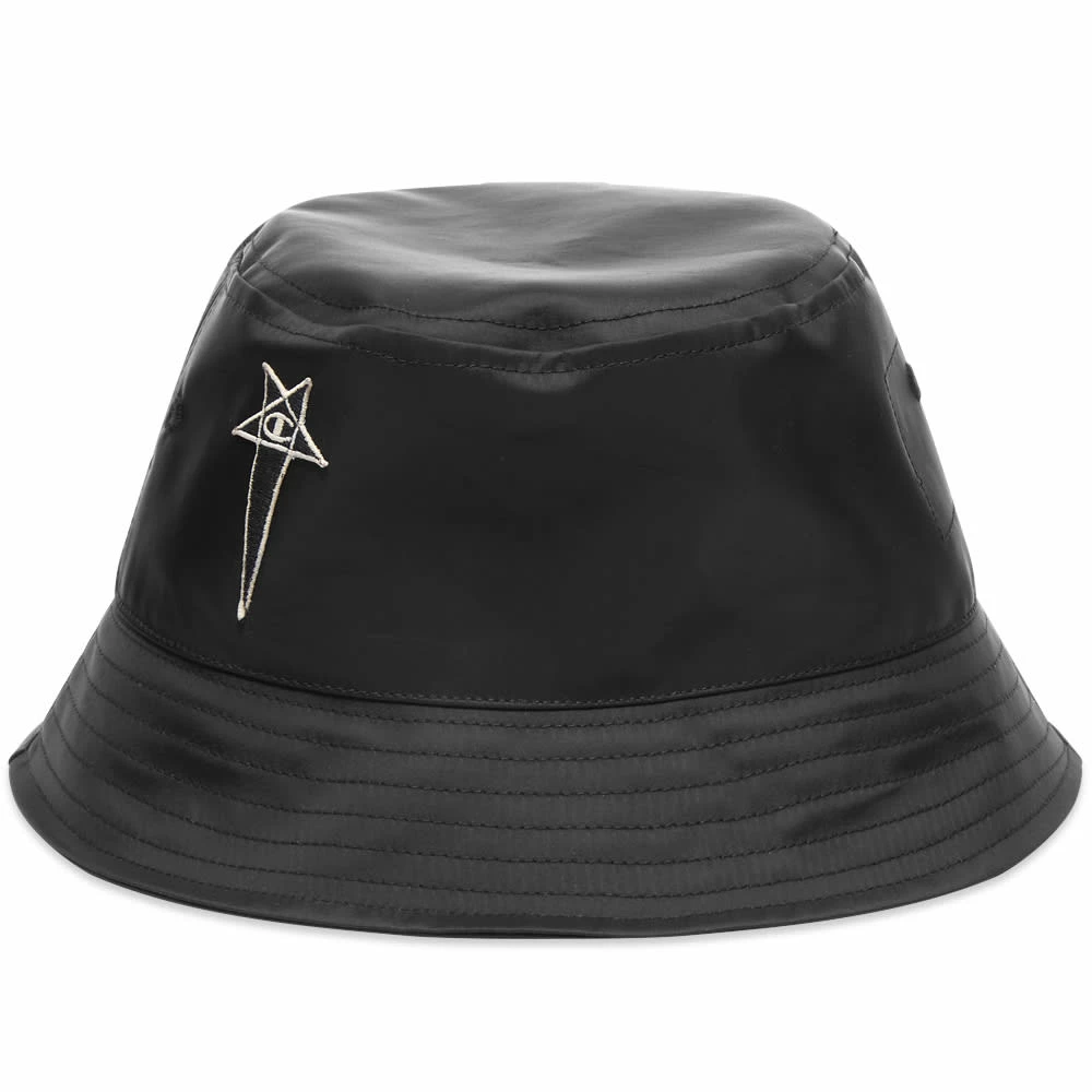 Made in Italy from recycled nylon, this black bucket hat brings together Champion’s eye for all-American cool and Rick Owens’ dark, artistic flair. It features tonal topstitching around the brim and the duo’s seasonal pentagram logo at the side.