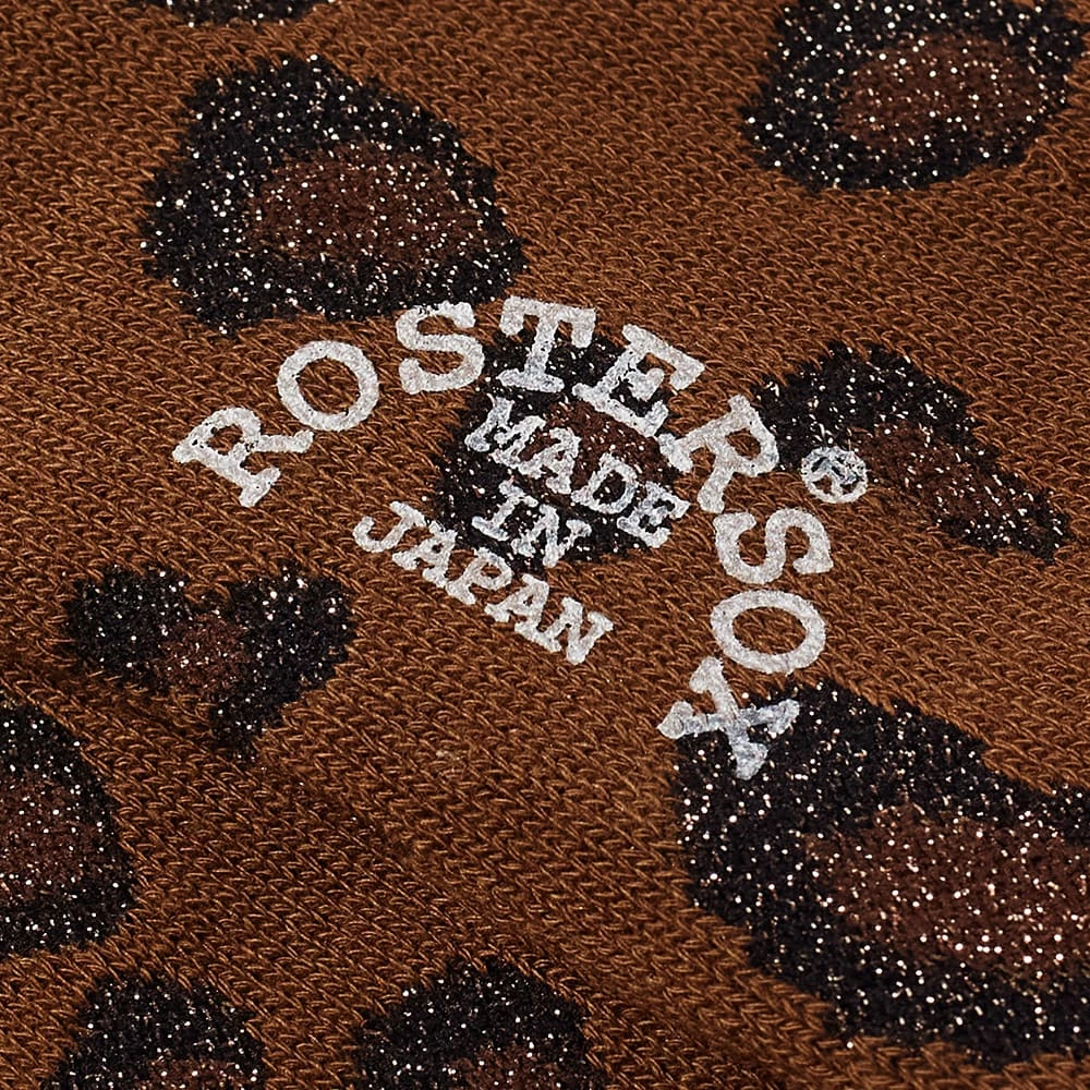 Walk on the wild side with these bold leopard print socks from Rostersox. Made in Japan from a soft cotton blend, they have high, ribbed cuff and get finished with a shimmery thread running through the print.