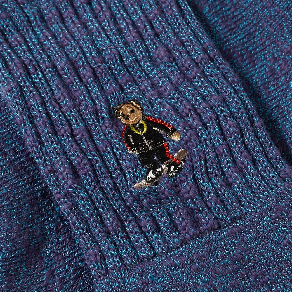 Rostersoxs’ socks are handcrafted in Japan with a strong focus on comfort, woven from a soft cotton blend with comfy ribbed cuffs. Coveted for their playfulness, this blue pair are designed with a sporty dressed bear embroidered at the ankle.