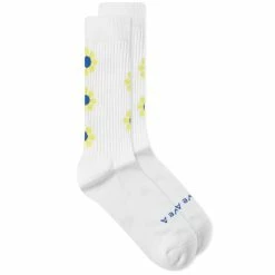 Exuding ‘70s flower power vibes, Rostersox’s Peace socks have yellow and blue flowers engineered into the cuffs. They’re made in Japan from comfortable cotton and feature the brand’s ‘Have A Nice Day’ mantra across the toes.