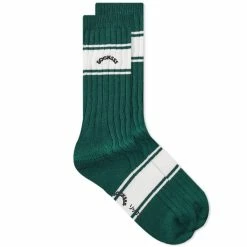 These sporty-inspired socks from Stockholm-born brand SOCKSSS promise to be a cool and comfy pair to add to your collection. Made in Portugal from a soft organic cotton blend, they’re coloured in green and are detailed with off-white stripes at the ankle with arched branding.