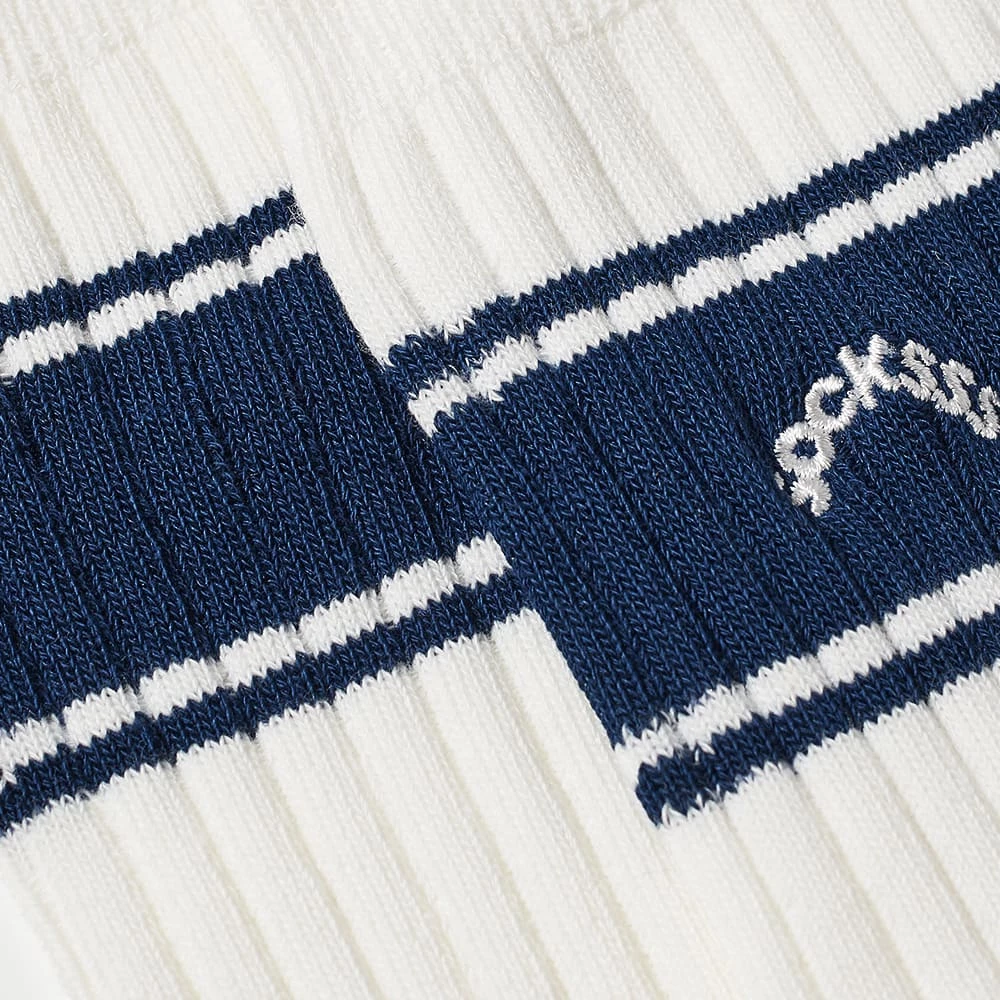 These sporty-inspired socks from Stockholm-born brand SOCKSSS promise to be a cool and comfy to add to your collection. Made in Portugal from a soft organic cotton blend, they’re coloured in white and are detailed with navy stripes at the ankle with arched branding.