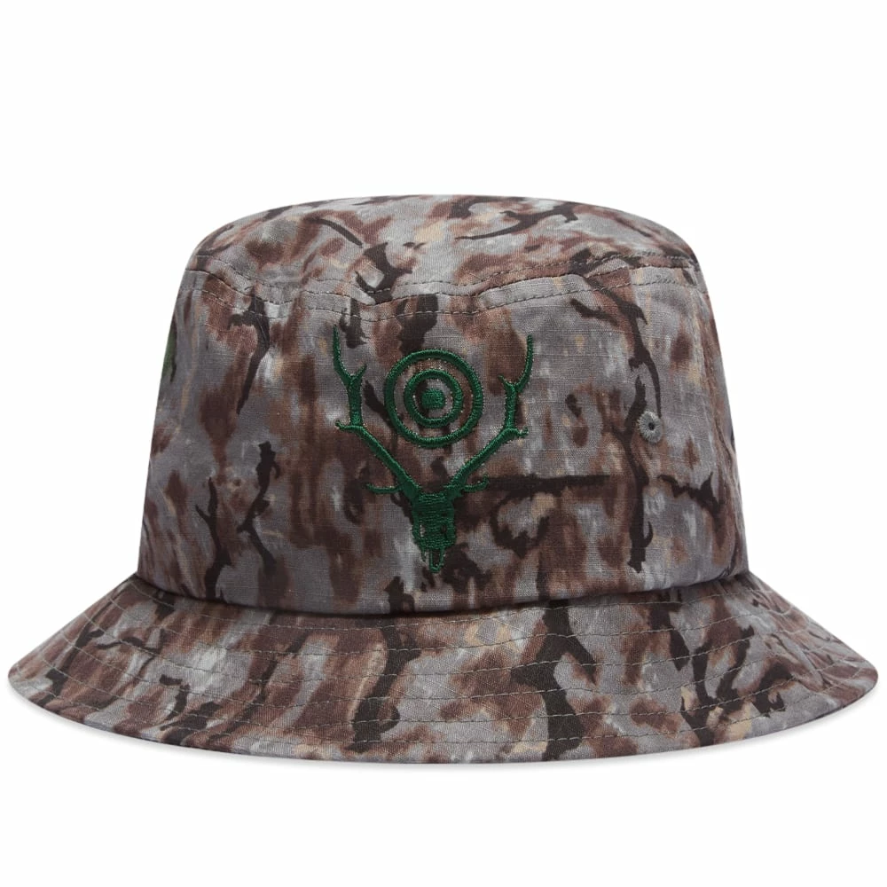 South2 West8 takes cues from hunting gear to design this bucket hat, which is wrapped in a brown and grey camo. Crafted from cotton, it’s then signed off with the brand’s skull and target logo embroidered on the front in green.