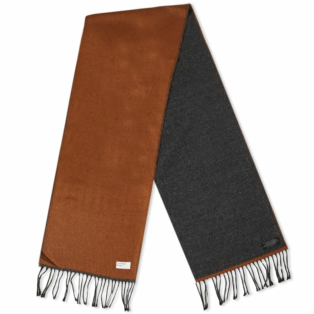 Producing garments rooted in alternative ideas with high quality fabrics, Universal Works crafts this double sided scarf from acrylic. A brown and charcoal colourway is an ode to the great outdoors, the place where the AW22 journey began. Finished with a stitched brand label.