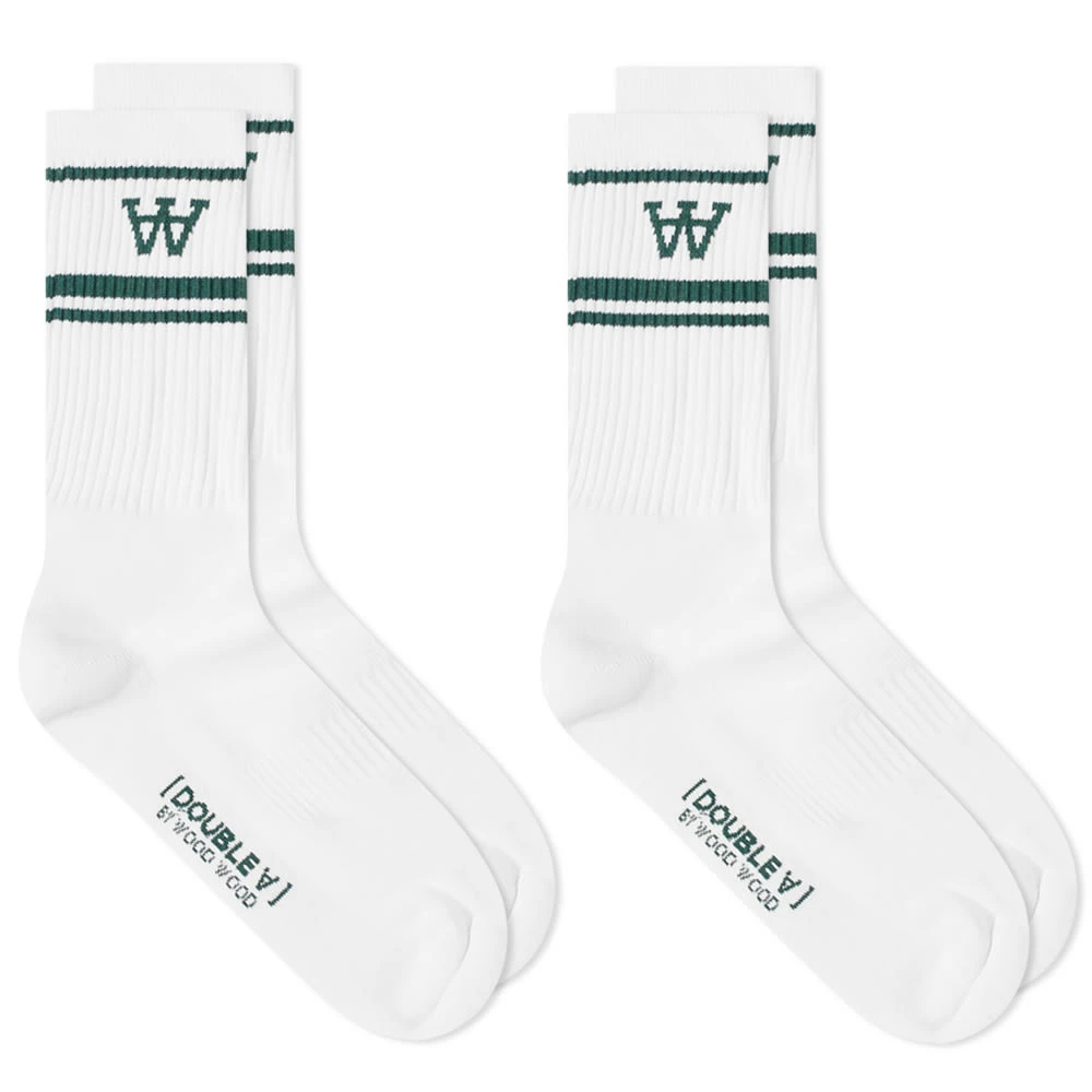 Taking cues from varsity style, this two pack of white socks from Wood Wood are wrapped in sporty striping. Crafted from a cotton rich mix, they’re detailed with cosy ribbed cuffs and the label’s signature upside down ‘AA’ logo.